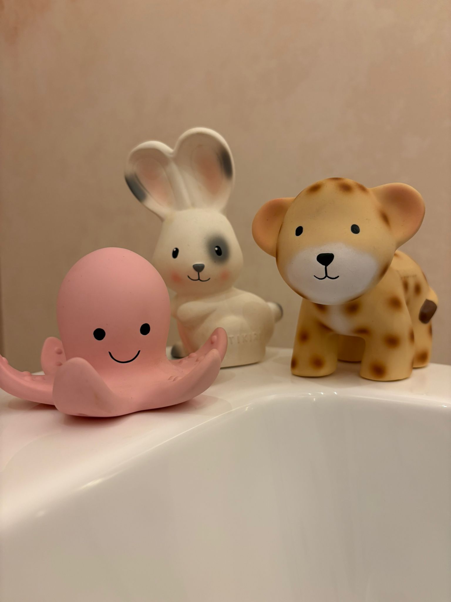 Wil je een uniek, veilig en liefdevol cadeau geven aan kersverse of aanstaande ouders? Met de Tikiri bad speeltjes van Ons BabySpa Huisje geef je meer dan alleen speelgoed. Je schenkt een moment van ontspanning, ontdekking en plezier tijdens het badderen. De bad speeltjes van Tikiri zijn speciaal ontworpen voor de allerkleinsten, gemaakt van natuurlijke materialen en vrij van schadelijke stoffen. Dankzij het zachte materiaal en het veilige ontwerp zijn ze perfect afgestemd op kleine handjes en nieuwsgierige zintuigen.